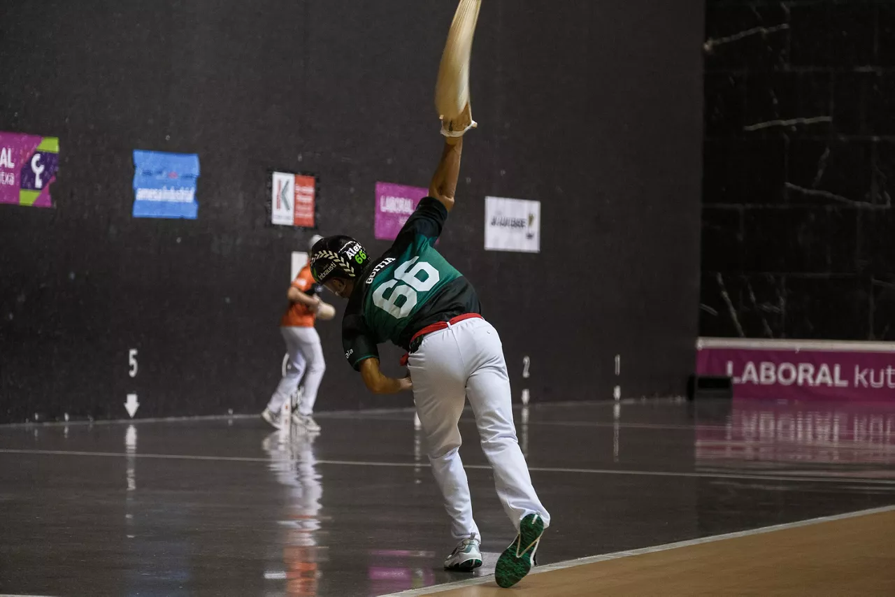 Bizkaitarrek finalerako txartela lortu dute, Johan eta Gorka mendean hartuta (15-6 eta 15-8). Lapurtarrek partida kaskarra egin dute, hanka-sartze gehiegitxorekin. Alex Goitiak, ordea, neurketa bikaina jokatu du.