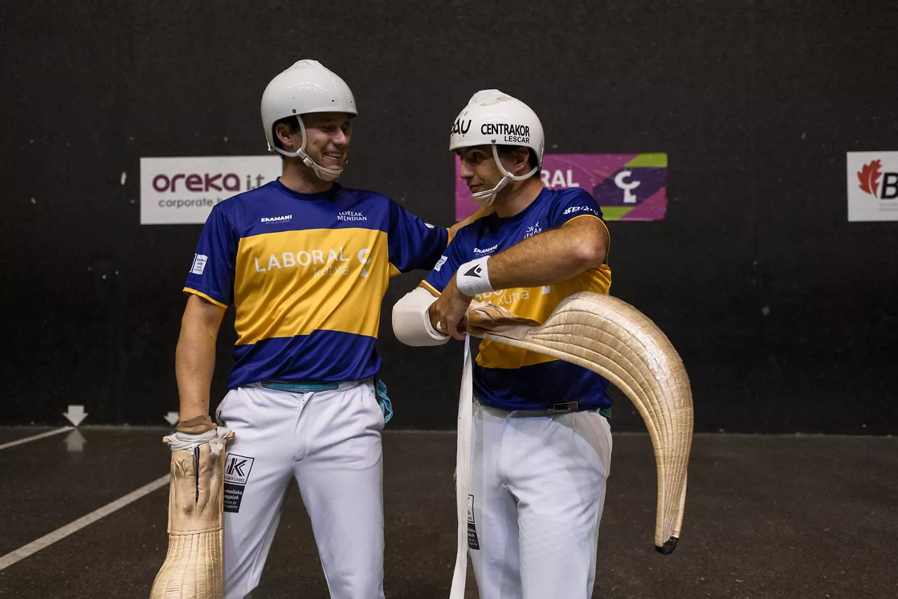 Jean Olharanek eta Thibault Basquek bi jokotan (10-15 eta 12-15) irabazi diete Eñaut Urreistiri eta Imanol Lopezi Gernikako Jai Alai pilotalekuan jokatu den Eusko Label Winter Serieseko finalerdietako azken jardunaldian.