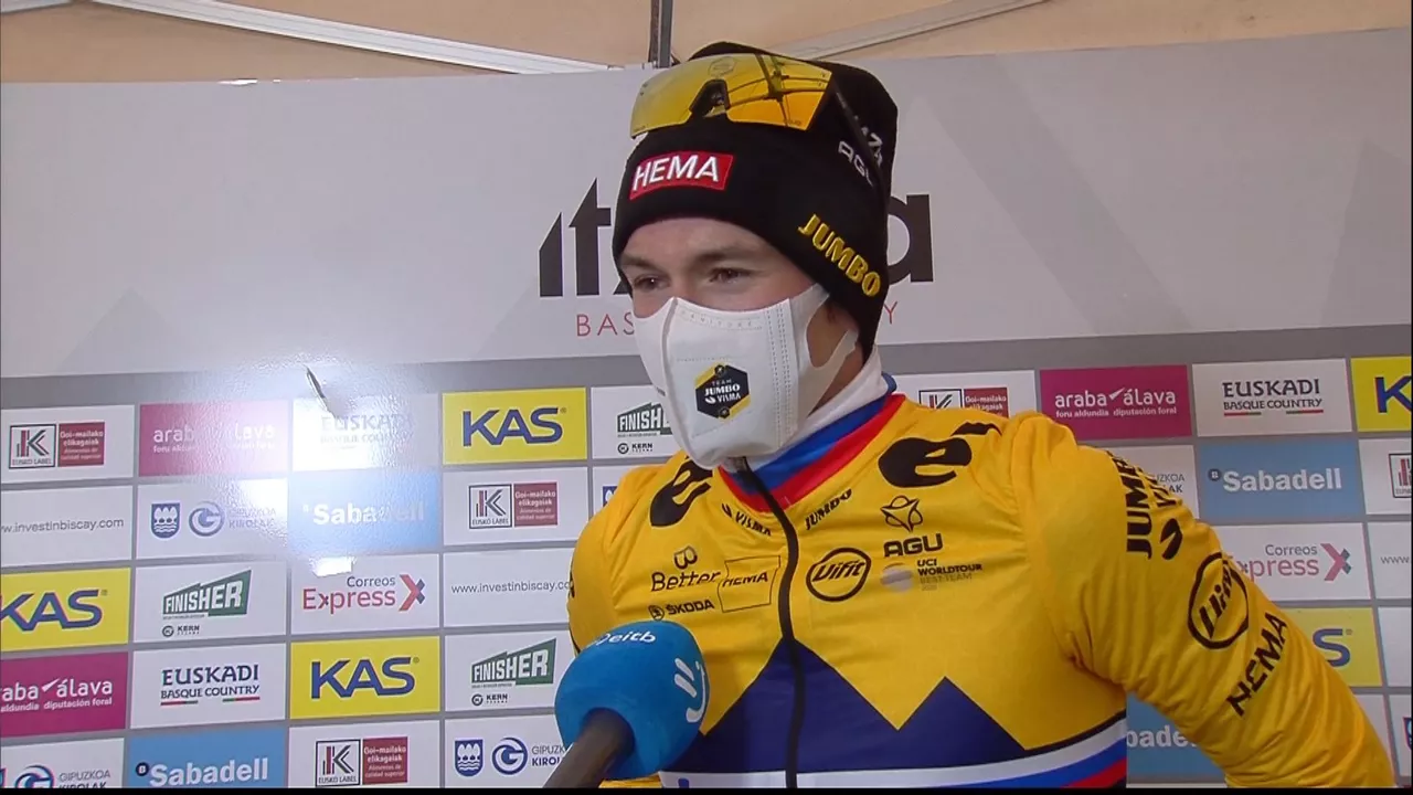 Alex Aranburu, ganador de la seguna etapa de la Itzulia, el líder de la montaña Maximilian Schachmann y el líder de la general Primoz Roglic han hablado con Euskal Telebista al finalaizar la etapa.