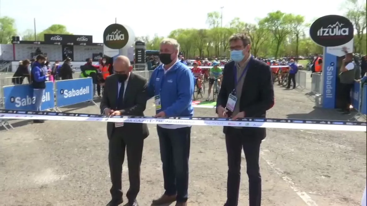 En la línea de salida de Amurrio hemos estado con Segio Higuita,Ciclista del Education-Nippo, Richard Carapaz (Ineoa) y Primoz Roglic, líder de la Itzulia.