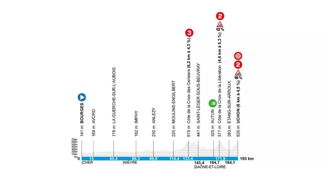 Los ciclistas se dirigirán entonces hacia las carreteras del Morvan, famoso por el Tour de Francia 2021. Esta vez, la subida a Uchon no solo se incluirá, sino que determinará al ganador de la etapa y posiblemente al nuevo líder de la carrera.