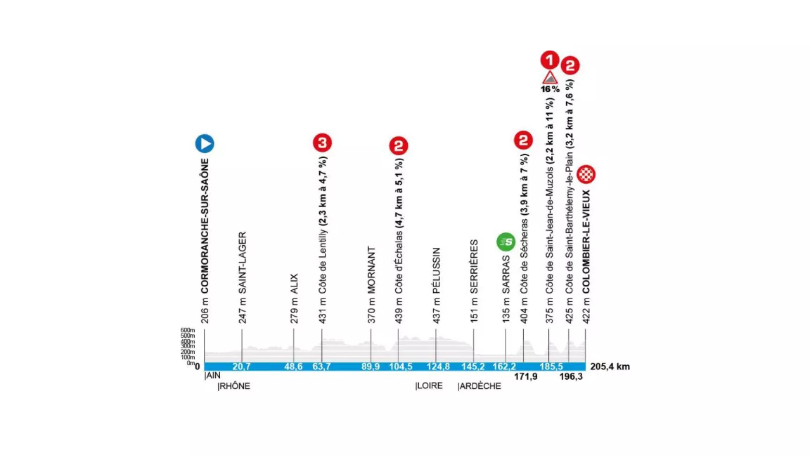 La segunda mitad de esta 84ª París-Niza está repleta de ascensiones. La 5ª etapa, la más larga de la semana, también presenta el mayor desnivel positivo, diseñada para desgastar a los ciclistas camino a Colombier-le-Vieux.