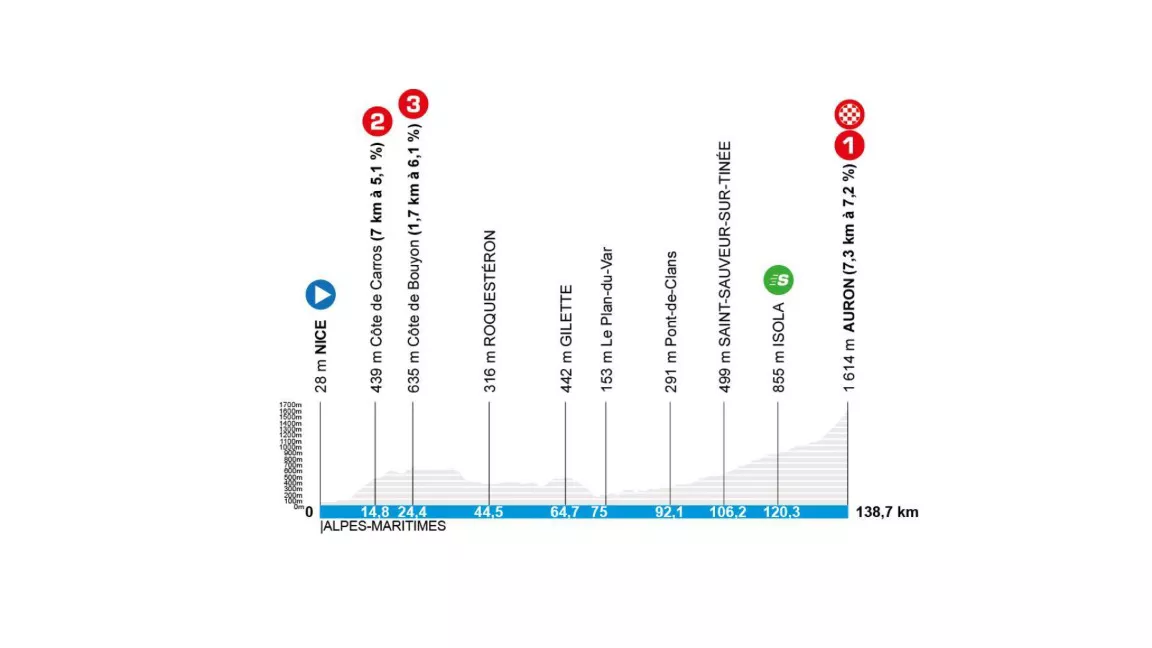 El fin de semana el pelotón regresará al Paseo de los Ingleses para el inicio de la 7ª etapa, rumbo a la estación de Auron, donde Michael Storer realizó una actuación excepcional en la primavera de 2025.