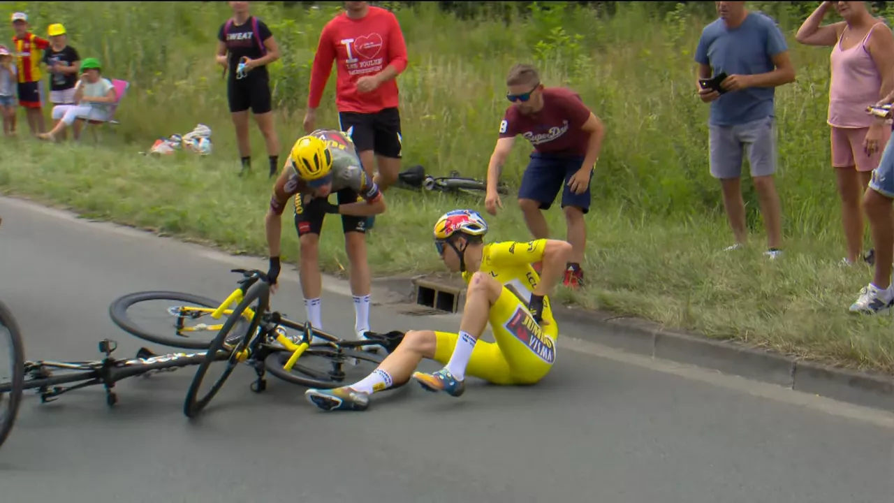 Caída de Van Aert y susto con un coche en la quinta etapa