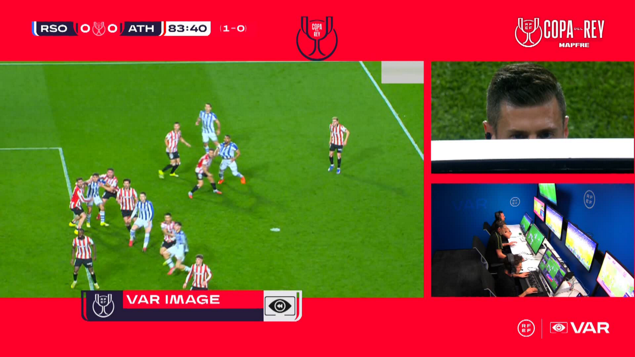 Se ha alertado entonces a César Soto Grado para que revisase un agarrón de Iñigo Ruiz de Galarreta sobre Yangel Herrera en un saque de esquina muy previo, a lo que el trencilla de campo ha reaccionado decretando pena máxima; Oyarzabal la ha transformado como en él es habitual.