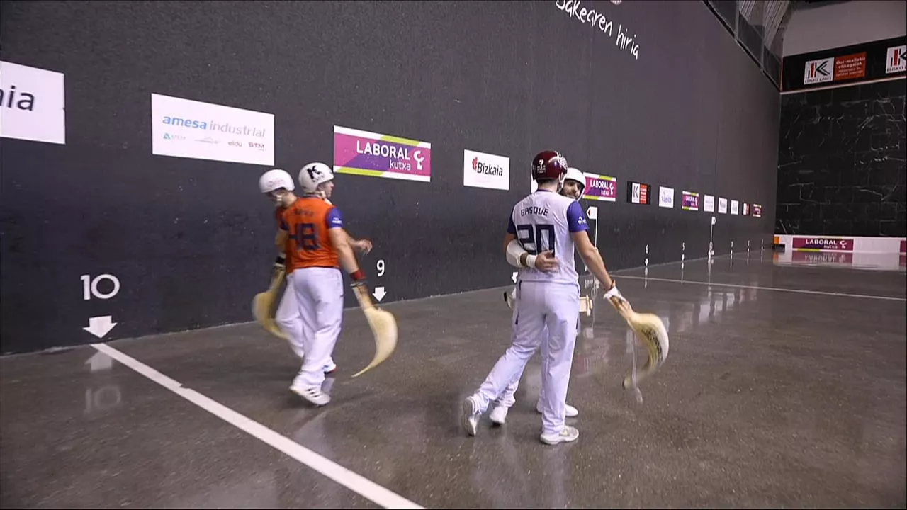 El delantero bearnés y el zaguero labortano han sido superiores en el primer set (11-15), pero en el segundo parcial la pareja vizcaína se ha resarcido (15-8). El partido se ha decidido en el tercer set, donde los tres últimos tantos han sido de los primeros (4-5).