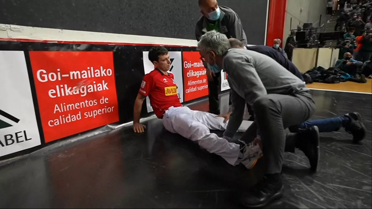 Con 21-18 para Jon Ander Peña y Rubén Salaverri, ante Amiano y Eskiroz, un pelotazo de Peña II hacia la pared ha impactado en la rodilla izquierda del zaguero de Fuenmayor. Salaverri II ha tenido que ir al vestuario, pero, minutos después, se ha recuperado, y ha finalizado el partido.