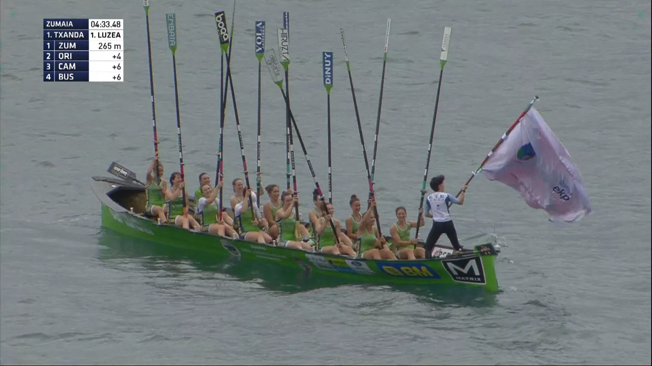 La embarcación guipuzcoana de Hondarribia fue la ganadora de la V Ikurriña de Zumaia, tercera regata puntuable para la Liga ETE, y pasa a encabezar en solitario la segunda categoría femenina de traineras.