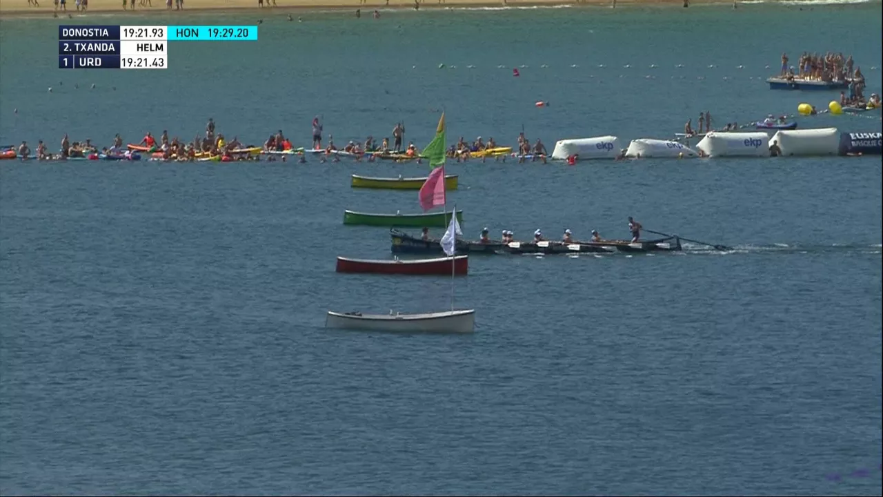 Momento en el que Urdaibai supera a Donostiarra y los últimos metros de la ''Bou Bizkaia''