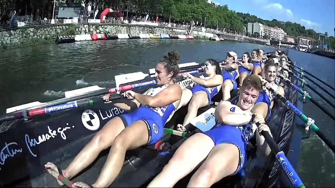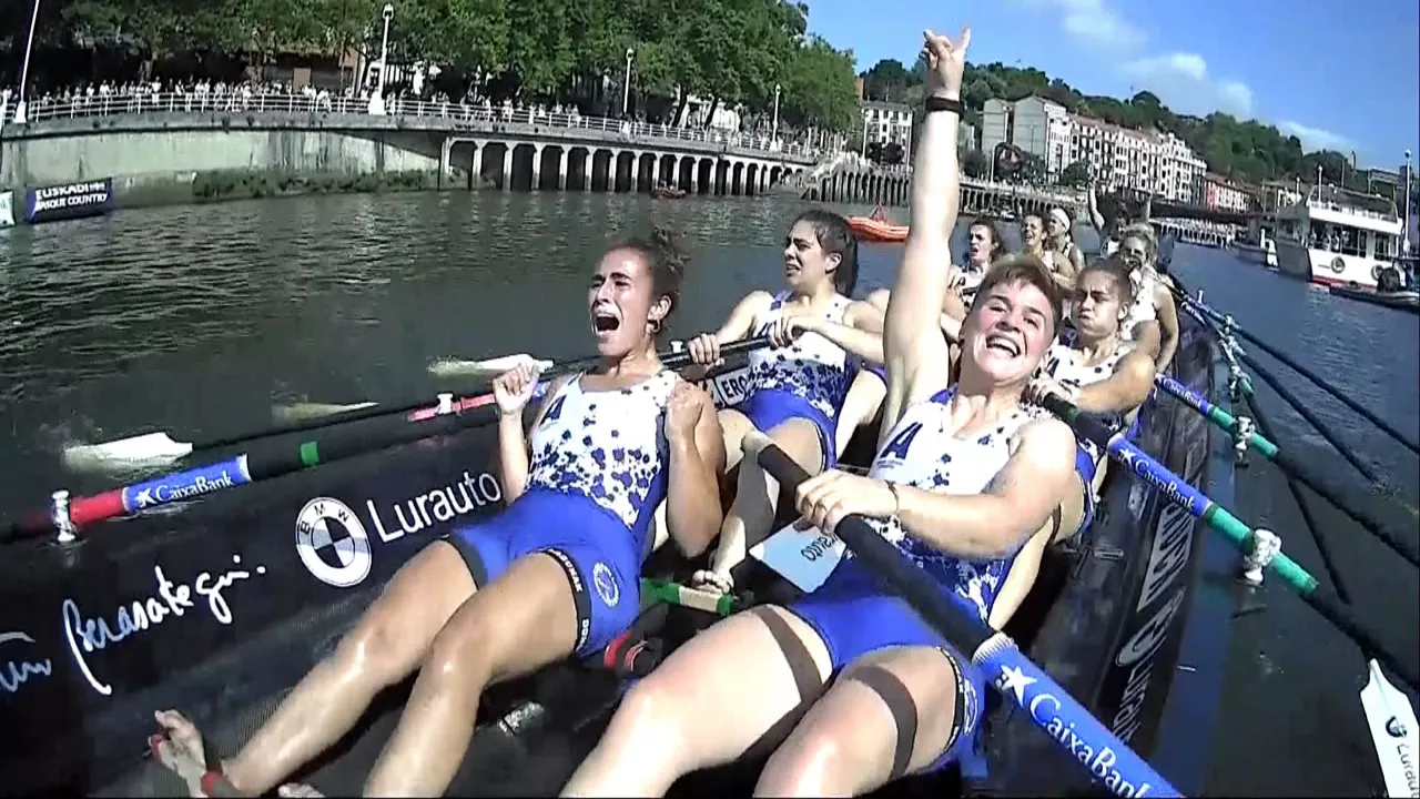 Arraun Lagunak se ha llevado la primera regata de la Liga Euskotren, la Bandera de Bilbao. Xubane Arantza Uribarrenaren, patrona de Donostia Arraun Lagunak, se ha mostrado feliz después de la victoria. Original: Euskara.