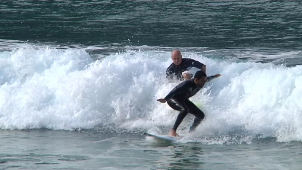 El brasileño Derek Rabelo y el zarauztarra Aitor Francesena tienen en común su pasión por el surf y su condición de invidentes. La presentación del documental 'Beyond Sight' les ha unido.