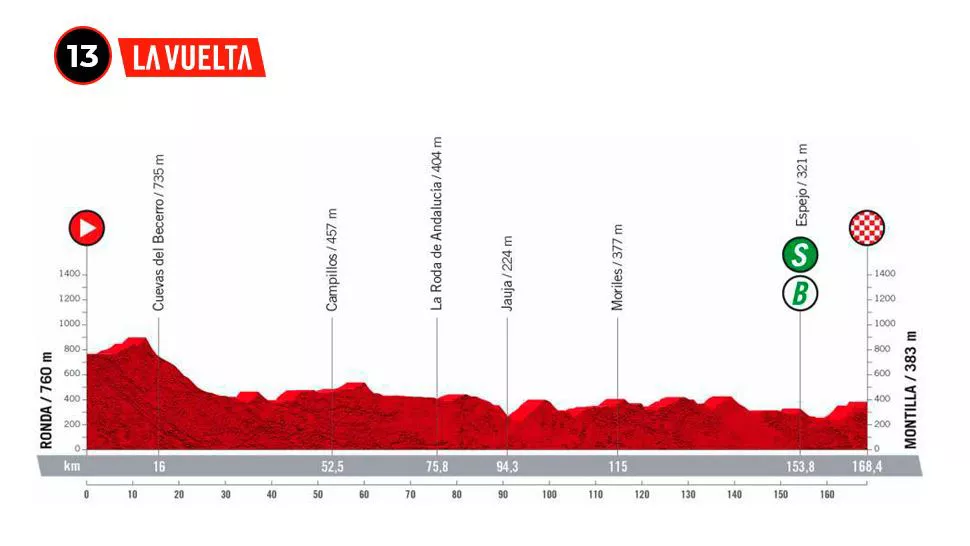 Recorrido y perfil de la etapa 13 de la Vuelta a España 2022: Ronda – Montilla (168,4 km)