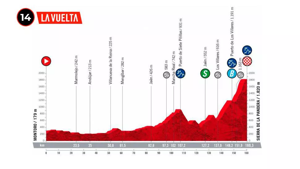 Recorrido y perfil de la etapa 14 de la Vuelta a España 2022: Montoro – Sierra de La Pandera (160,3 km)