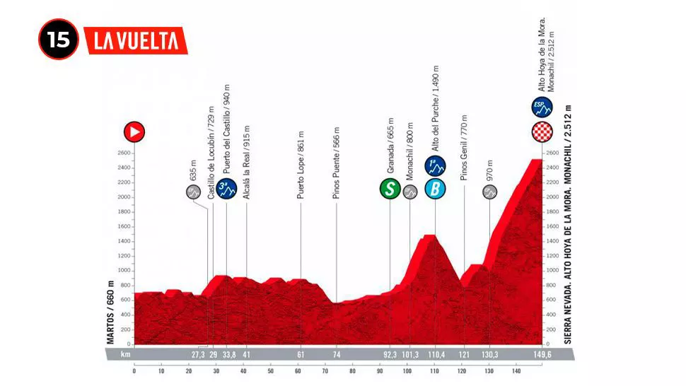 Recorrido y perfil de la etapa 15 de la Vuelta a España 2022: Martos – Sierra Nevada (153 km)