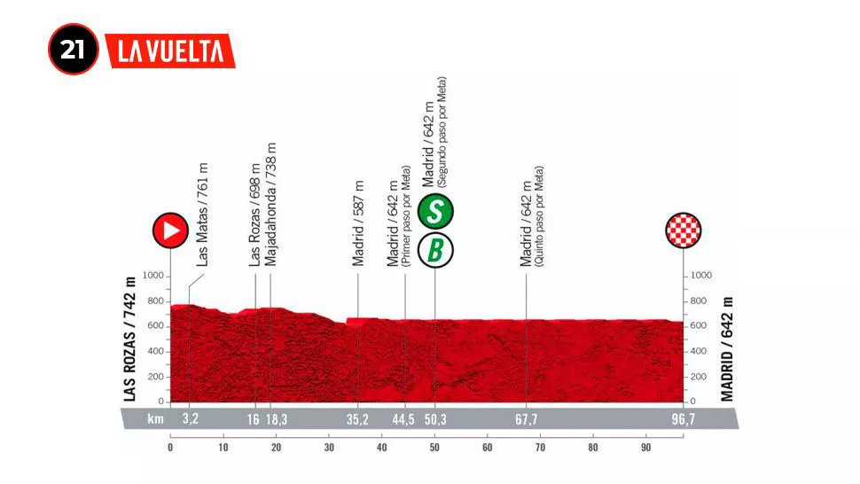 Recorrido y perfil de la etapa 21 de hoy de la Vuelta a España 2022: Las Rozas - Madrid (96,7 km)