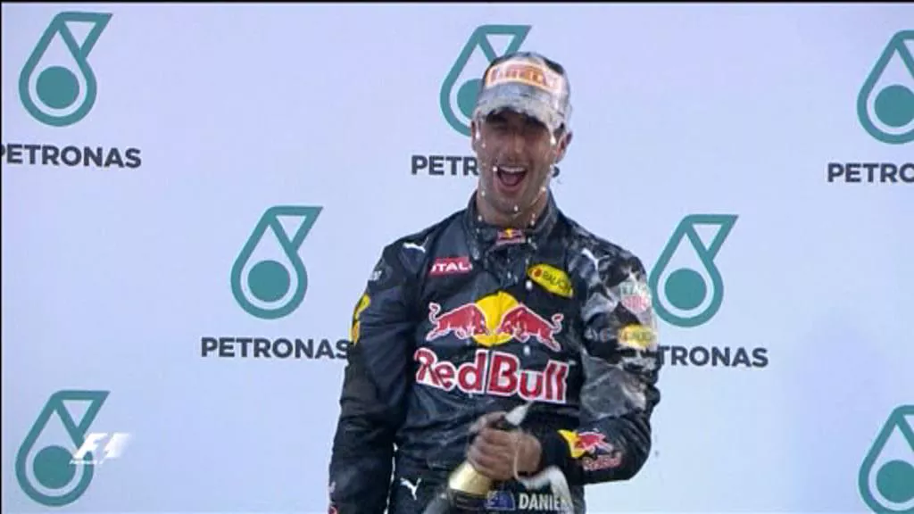 Daniel Ricciardo (Red Bull) ha ganado el Gran Premio de Malasia. Max Verstappen Red Bull) ha sido segundo y Nico Rosberg (Mercedes), tercero. Hamilton y Vetel no han finalizado la carrera.