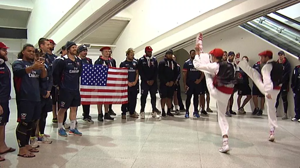 La selección de USA de rugby ya está en Euskadi. Han sido recibidos con un aurresku en el aeropuerto de Bilbao (Loiu). El 19 de noviembre se enfrentarán a Tonga en Anoeta.