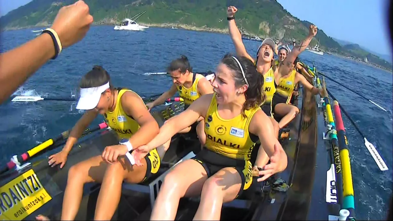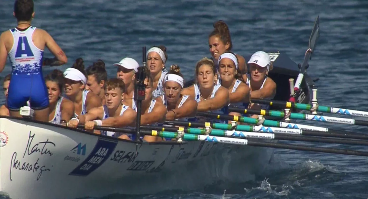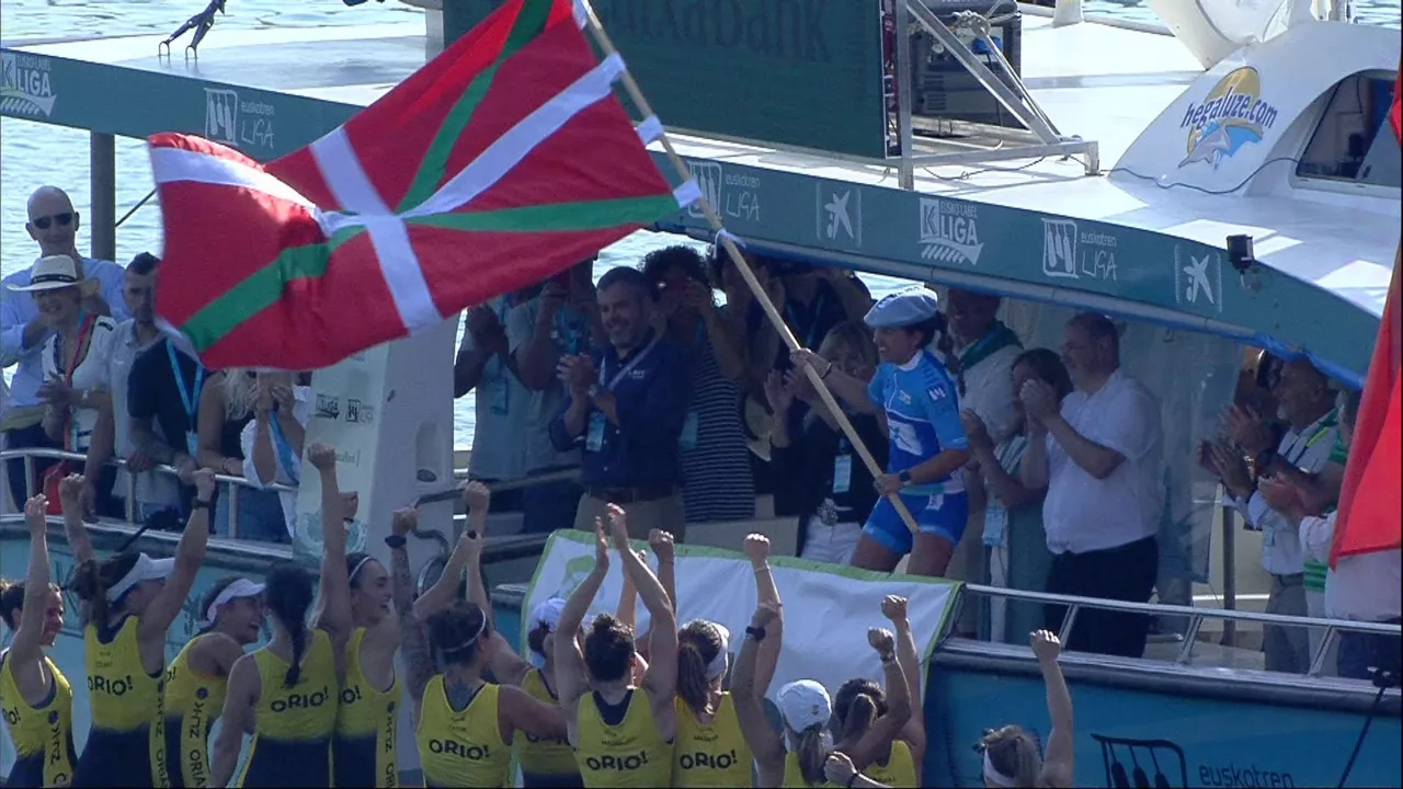 Arraun Lagunak taldeak irabazi du Euskotren Ligako lehenengo estropa, Bilboko Bandera. Xubane Arantza Uribarrena, Donostia Arraun Lagunak taldeko patroia, pozik agertu da garaipen osteko elkarrizketan.