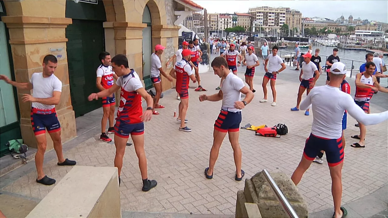 Aurretik, Orioko arraunlariak elkarrekin dantzan ikusi ahal izan ditugu; Gorka Aranberri patroiak sari bat jaso du, eta, segituan, Eneko Goia Donostiako alkateak emandako bandera astindu du, pozarren.