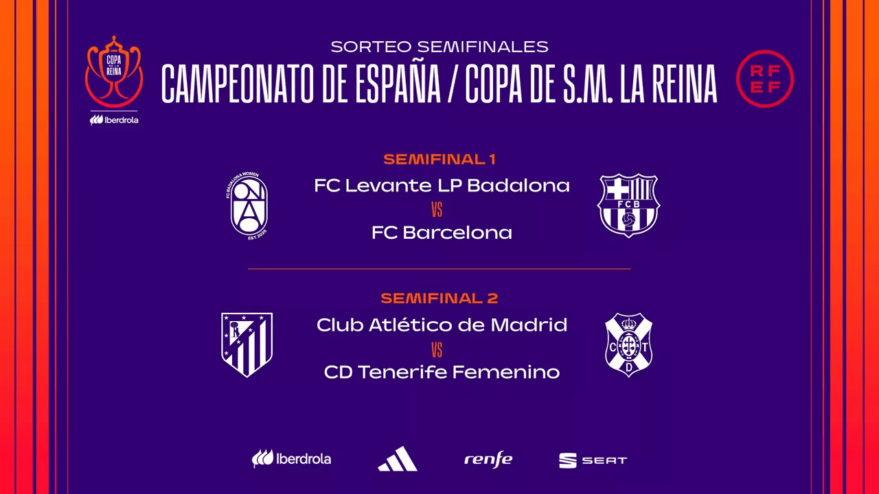 Levante Badalona-Bartzelona eta Tenerife-Atletico Madril dira Erreginaren Kopako bi finalerdiak.