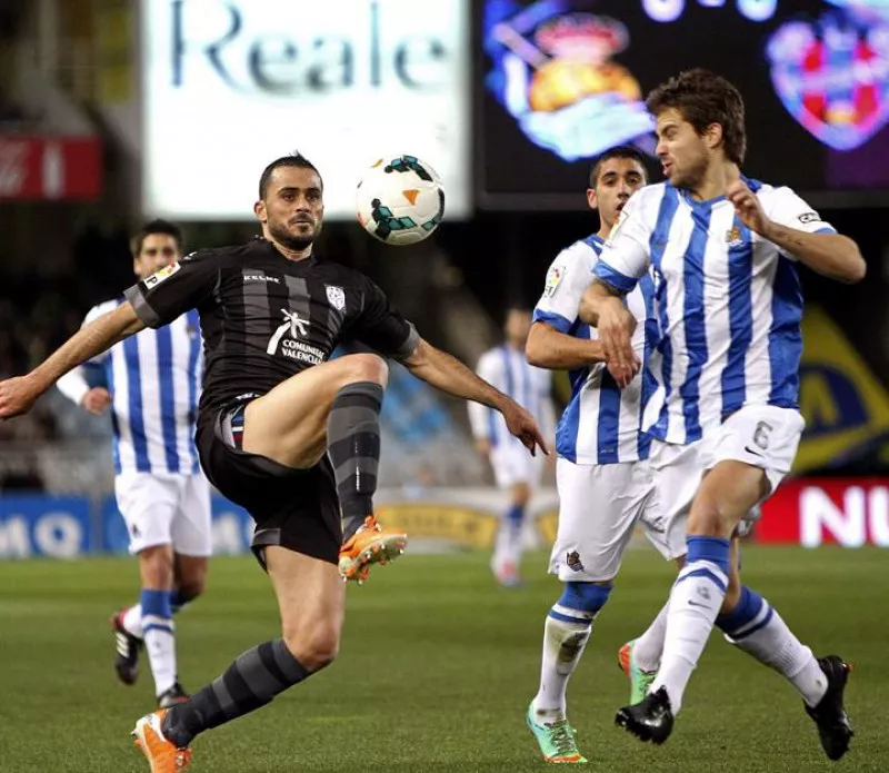 Levantek, aldiz, ez du ezertxo ere egin erasoan. Aukera aipagarriena, David Barralek urrutitik egindako jaurtiketa. Azkenean, berdinketa Anoetan. Realak Bartzelonaren kontra du hurrengo hitzordua, Kopako finalerdietako itzulerako partidan.