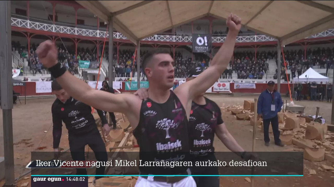 Iker Vicente nagusi, Mikel Larrañagaren aurkako aizkora desafioan