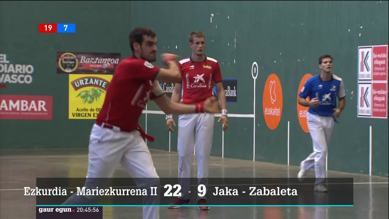 Bigarren jardunaldiko lehenengo partidan, ostiral gauean, Basaurin, Javi Zabala eta Julen Martija ez dira oso ondo hasi, Peio Etxeberria eta Beñat Rezusta aurkari, baina, neurketako bigarren zatian, guztiz nagusi izan dira.
