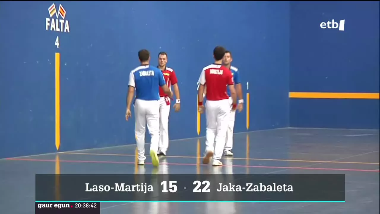 Bigarren jardunaldiko lehenengo partidan, ostiral gauean, Basaurin, Javi Zabala eta Julen Martija ez dira oso ondo hasi, Peio Etxeberria eta Beñat Rezusta aurkari, baina, neurketako bigarren zatian, guztiz nagusi izan dira.