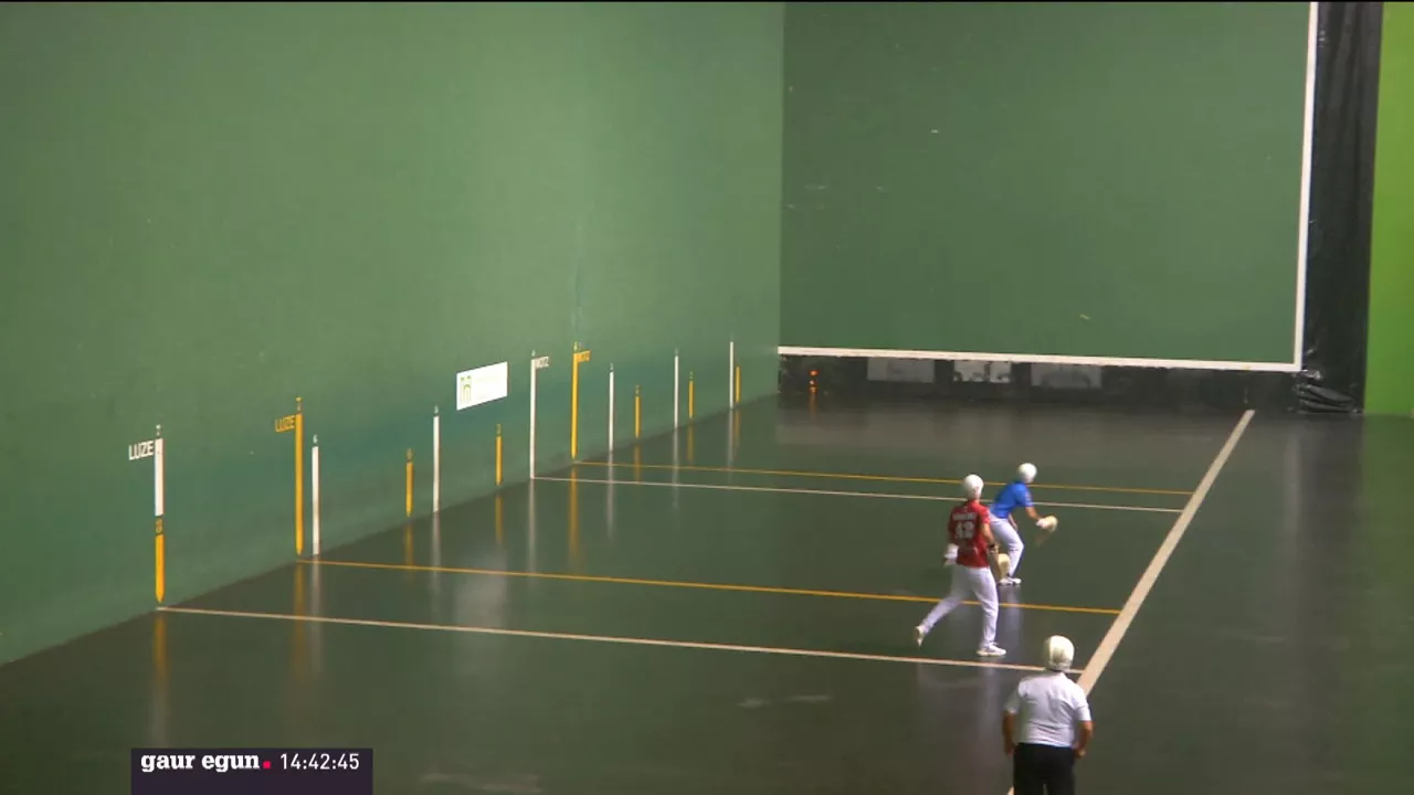 Jean Olharanek eta Gorka Sorozabalek 3 setetan menderatu dituzte Aritz Erkiaga eta Ion Ibarluzea (11-15, 15-8 eta 4-5). Hemen partidako azken tantoa.