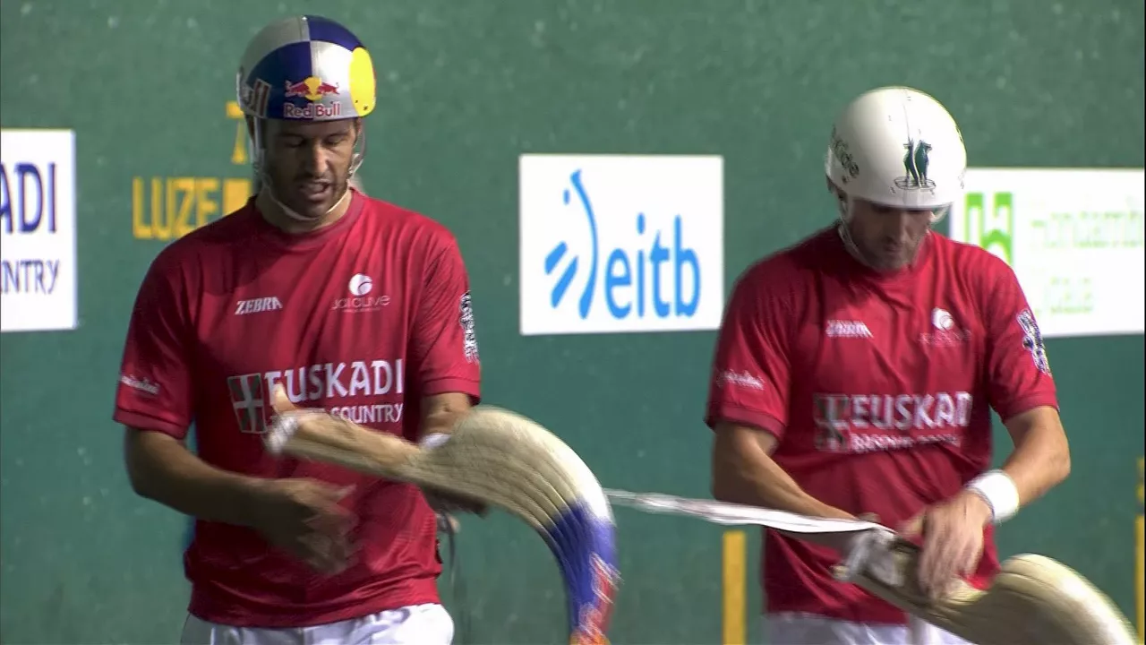 Jean Olharanek eta Gorka Sorozabalek 3 setetan menderatu dituzte Aritz Erkiaga eta Ion Ibarluzea (11-15, 15-8 eta 4-5). Hemen partidako azken tantoa.