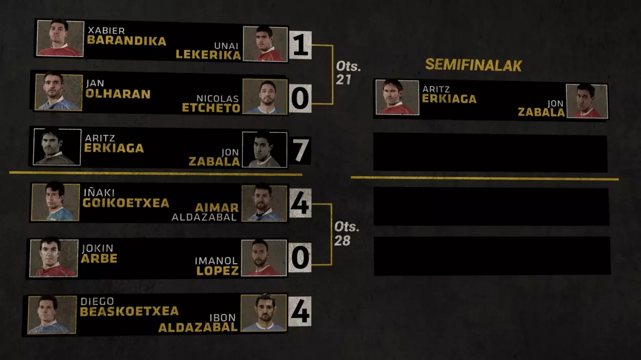 Txapelketako bosgarren jardunaldian, Xabi Barandikak eta Thibault Basquek Ekaitz Mendizabal "Goixerri" eta Mikel Manci menderatu dituzte, bi jokotan, 15-10 eta 15-6. EITBk partidako estatistikak jaso ditu.