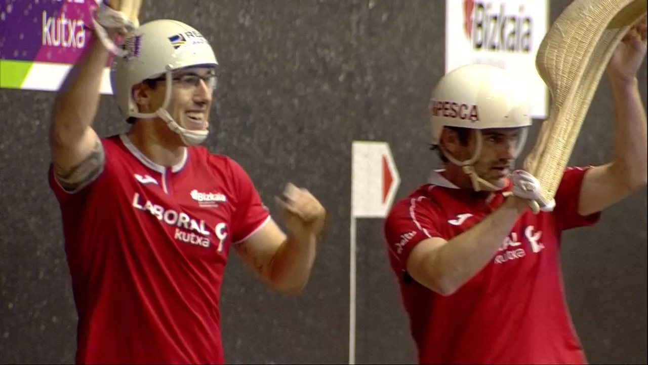 Jean Olharanek eta Gorka Sorozabalek 3 setetan menderatu dituzte Aritz Erkiaga eta Ion Ibarluzea (11-15, 15-8 eta 4-5). Hemen partidako azken tantoa.