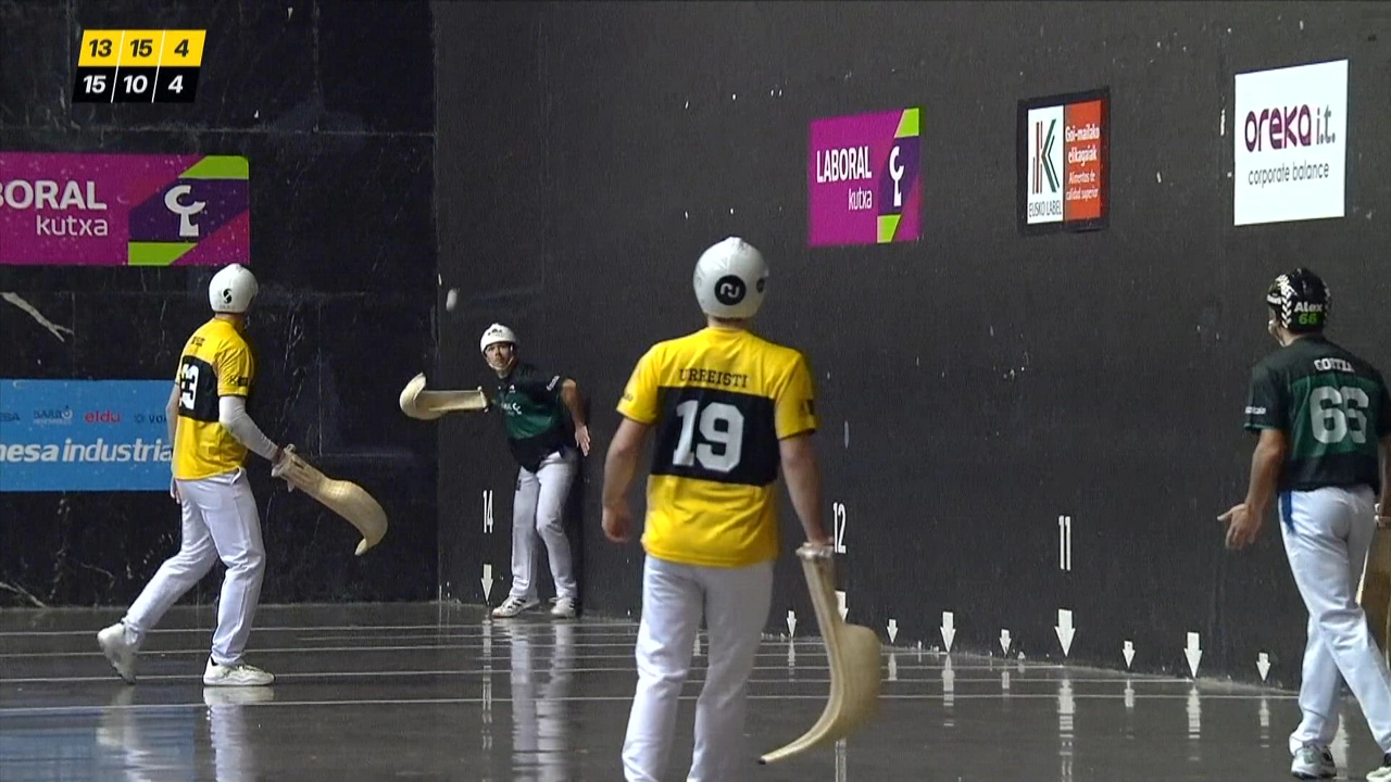 Johan eta Gorkak hiru setetan irabazi diete Urreisti eta Lopezi (15-11, 11-15 eta 4-5). Azken tantoa polemikoa izan da, 4-4 joanda, ez baitute jakin Johanek botatako bi paretakoa balekoa zen ala ez. Azkenean, epaileek lapurtarrei eman diete garaipena.