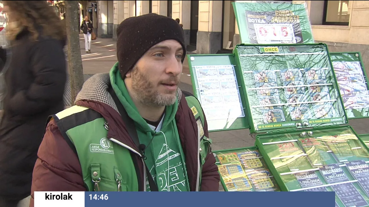 Txema Avendaño Bidaideak taldeko jokalaria ONCEren kupoiaren saltzailea da Bilbon