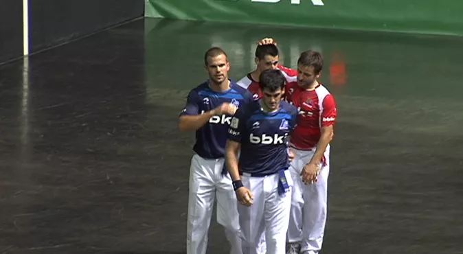 Ikuskizuna eman dute lau pilotariek. Dirua gorrien alde atera da nabarmen, baina Aspeko gazteek lanak eman dizkiete Pablori eta Albisuri. Zazpi eta hutseko azken partzialarekin erabaki dute gorriek.