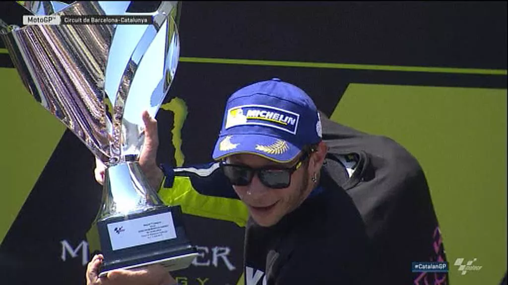 Valentino Rossi izan da onena Montmeloko zirkuituan. Marc Marquez bigarren izan da, eta Dani Pedrosa hirugarren. Iannonek aurretik eraman du Lorenzo, lurrera bota eta lidergoa galarazi dio.