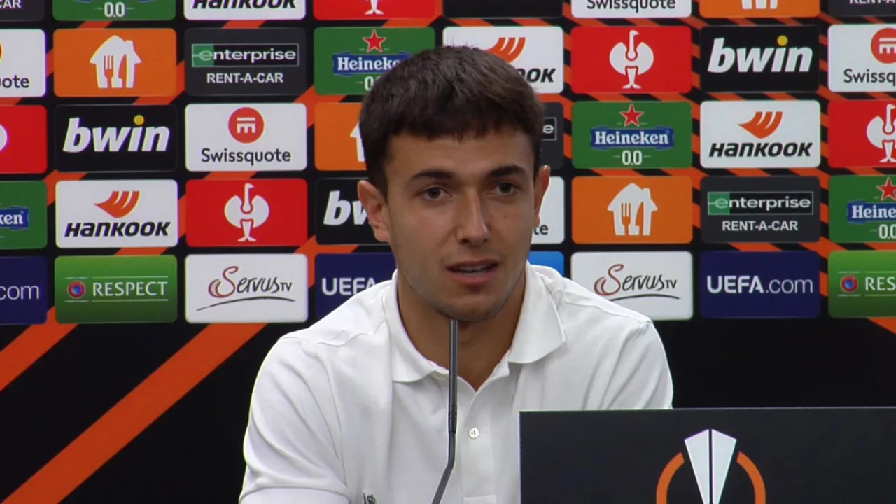 Martin Zubimendi Realeko jokalariak, talde txuri-urdinak Sturm Grazen aurka ostegunean jokatuko duen Europa Ligako multzoen faseko hirugarren jardunaldiko partidari buruz hitz egin du.