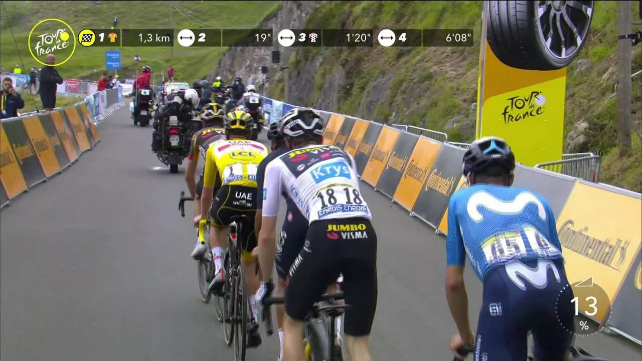 Lasterketako 32. ekitaldiko aurreneko mendiko etapan, UAE taldeko txirrindulari frantziarrak eskuratu du garaipena; AG Insurance taldeko ziklista maurizioarrra, ordea, hirugarren tokian helmugaratu da, seigarren jardunaldian, eta sailkapen nagusian duen aldea, orain, zortzi segundo handiagoa da.