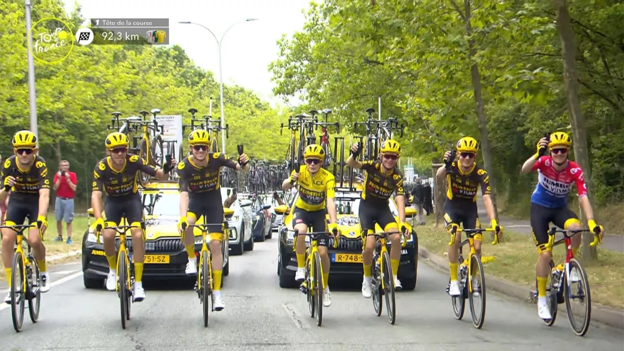 Jumbo-Vismak xanpain pixka bat edanez ospatu du Vingegaardek Tourrean lortutako garaipena