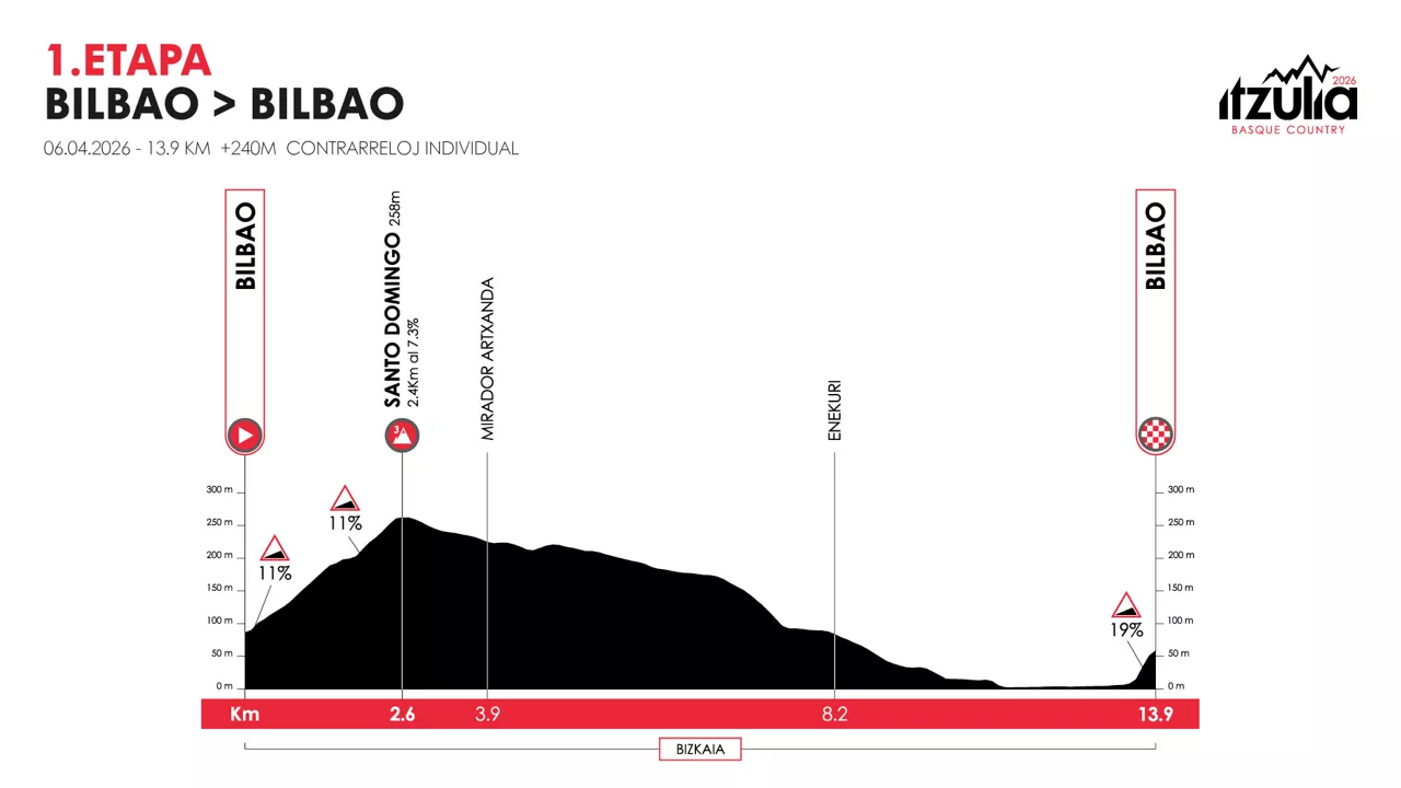 2026ko Itzulia Bilbon hasiko da, apirilaren 6an. Txirrindulariek 14 kilometroko erlojupekoa egin beharko dute Bizkaiko hiriburuan.