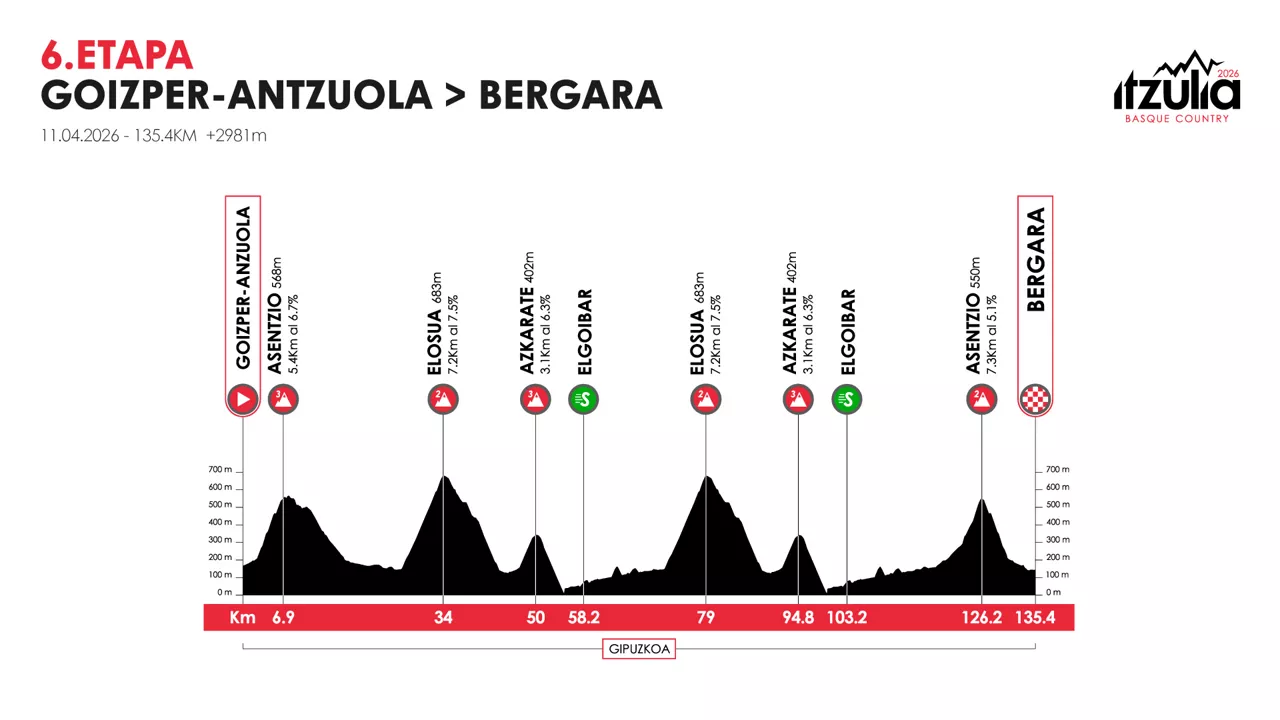 6. etapa | BergaraāBergara (135,2 km)