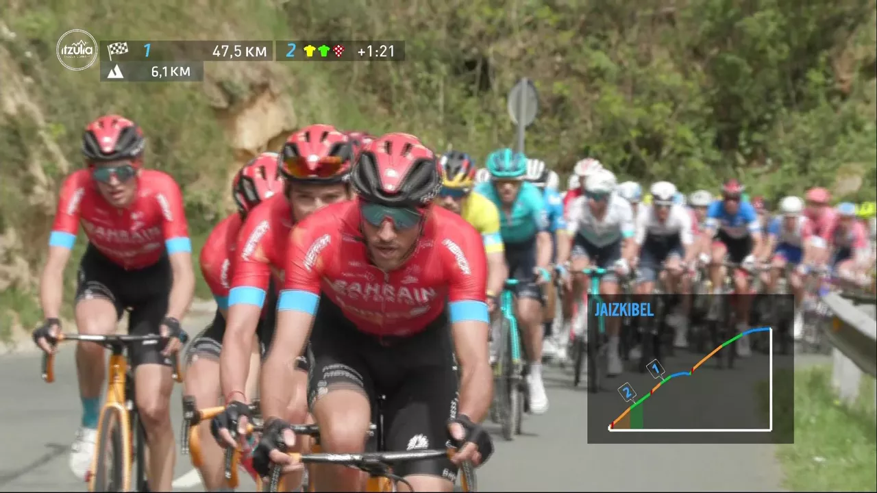 Pello Bilbaoren eta Mikel Landaren Team Bahrain Victorious taldeak erritmoa bizitu du oso Jaizkibeleko aldapetan.