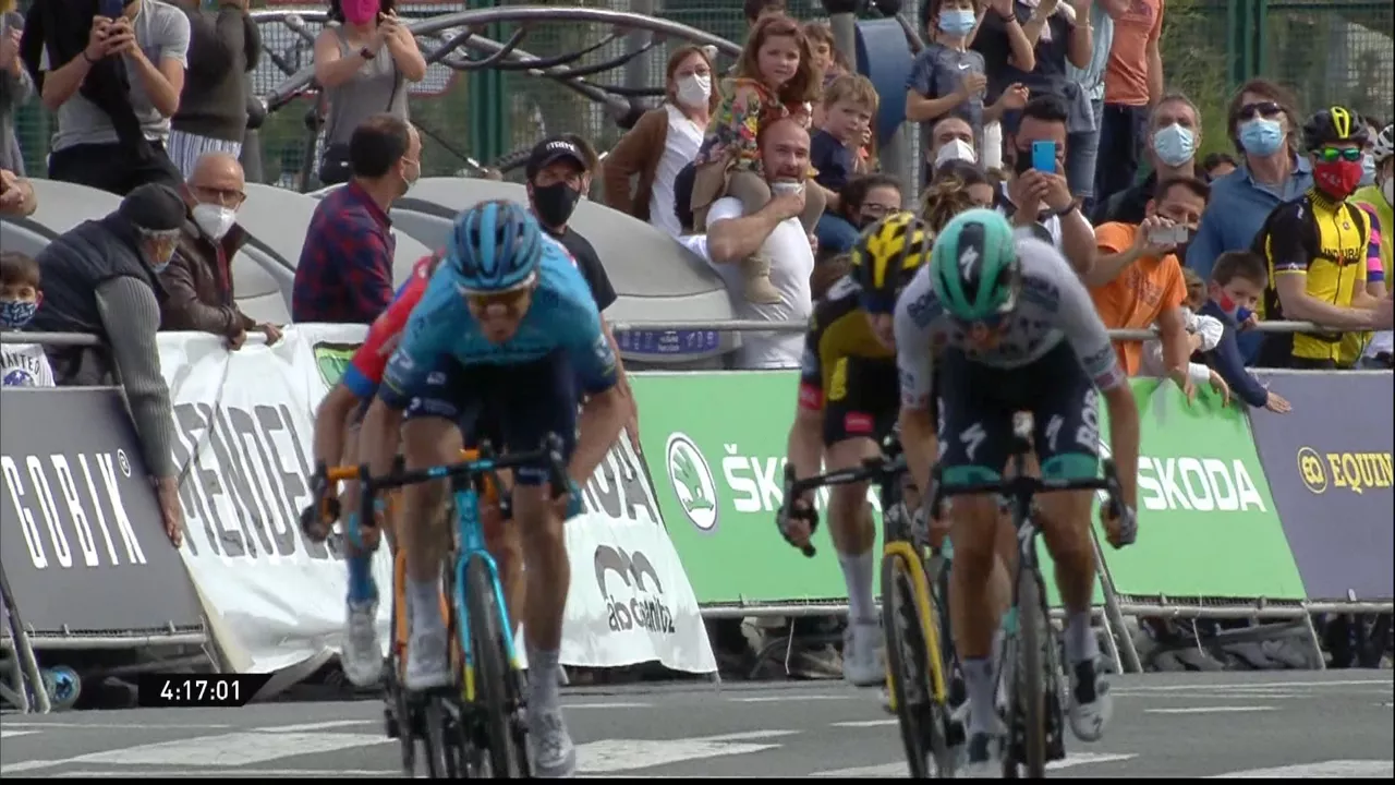 Astana taldeko txirrindularia Itzuliko 4. etapan gailendu da, Pello Bilbaorekin esprint estu-estua jokatu ostean.