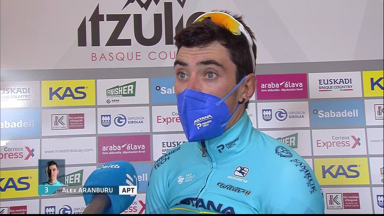 Alex Aranburu Itzuliko bigarren etapako irabazleak, Maximilian Schachmann mendiko liderrak eta Primoz Roglic sailkapen nagusiko liderrak Euskal Telebistarekin hitz egin dute etapa amaitu ostean.