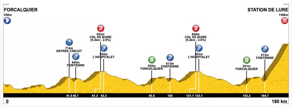 2. etapa: otsailak 14, larunbata. Forcalquier – Montagne de Lure (180 km); irteera 11:50ean eta helmuga 16:20ean.