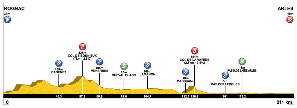 3. etapa: otsailak 15, igandea. Rognac – Arles (210 km); irteera 11:30etan eta helmuga 16:20ean.