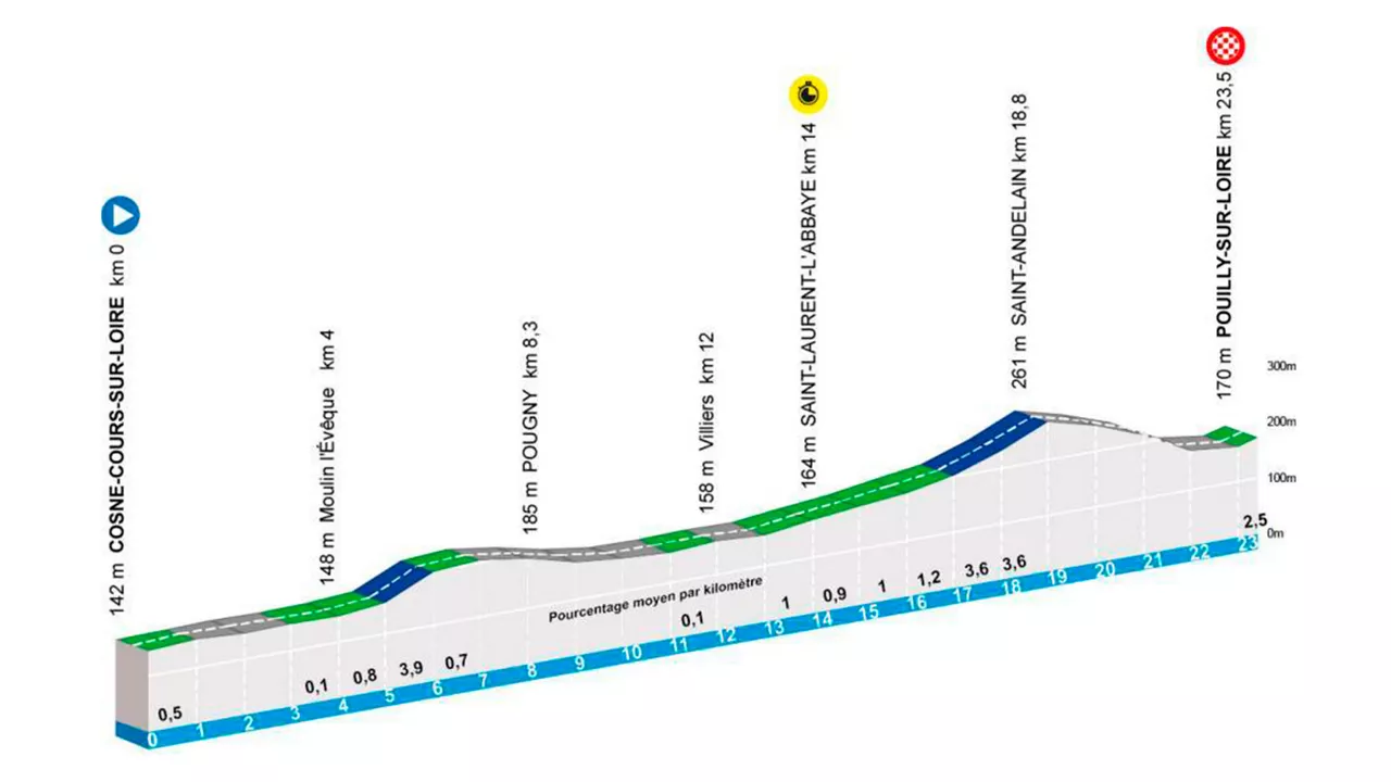 Frantziako Tourreko irteera buruan dutela, Cosne-Cours-sur-Loire eta Pouilly-sur-Loire arteko taldekako erlojupekoa (3. etapa) entsegua izango da txirrindularientzat.