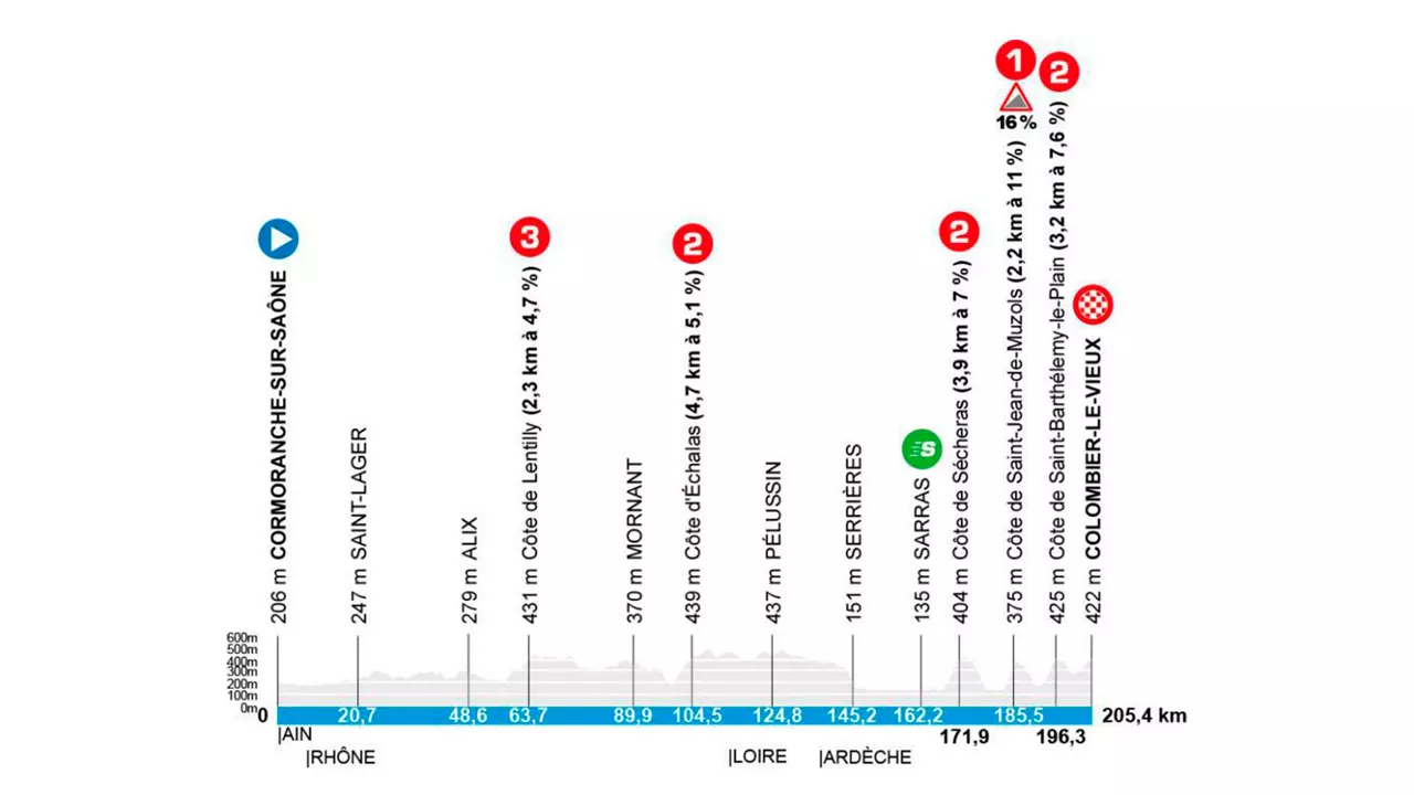 84. edizio honen bigarren erdia igoeraz beteta dago. 5. etapak, asteko luzeenak, ere desnibel positiborik handiena du, txirrindulariak Colombier-le-Vieuxera bidean nekatzeko diseinatua.